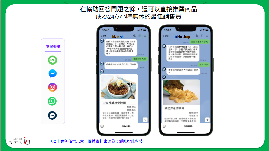 最後,商品推薦模式,則是帶入了客製化的功能,能將與消費者對談完之後,消費者可能有興趣的商品,