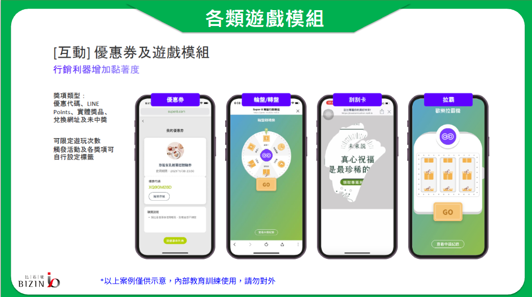✅多元創意呈現模式--->或是運用遊戲模組、問卷抽獎,提高會員互動率