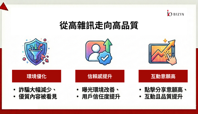 - 品牌與創作者的曝光環境改善,使用者信任度回升。